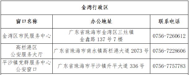 居住在金湾行政区域内(包含金湾区、高栏港区)的港澳台居民可以预约在金湾行政区范围内任一港澳台居民居住证业务受理点办理(即金湾公安分局、高栏港公安分局下设的业务受理点);