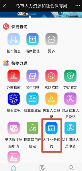 2、点击“人社业务预约”(需绑定自己的个人信息哦)
