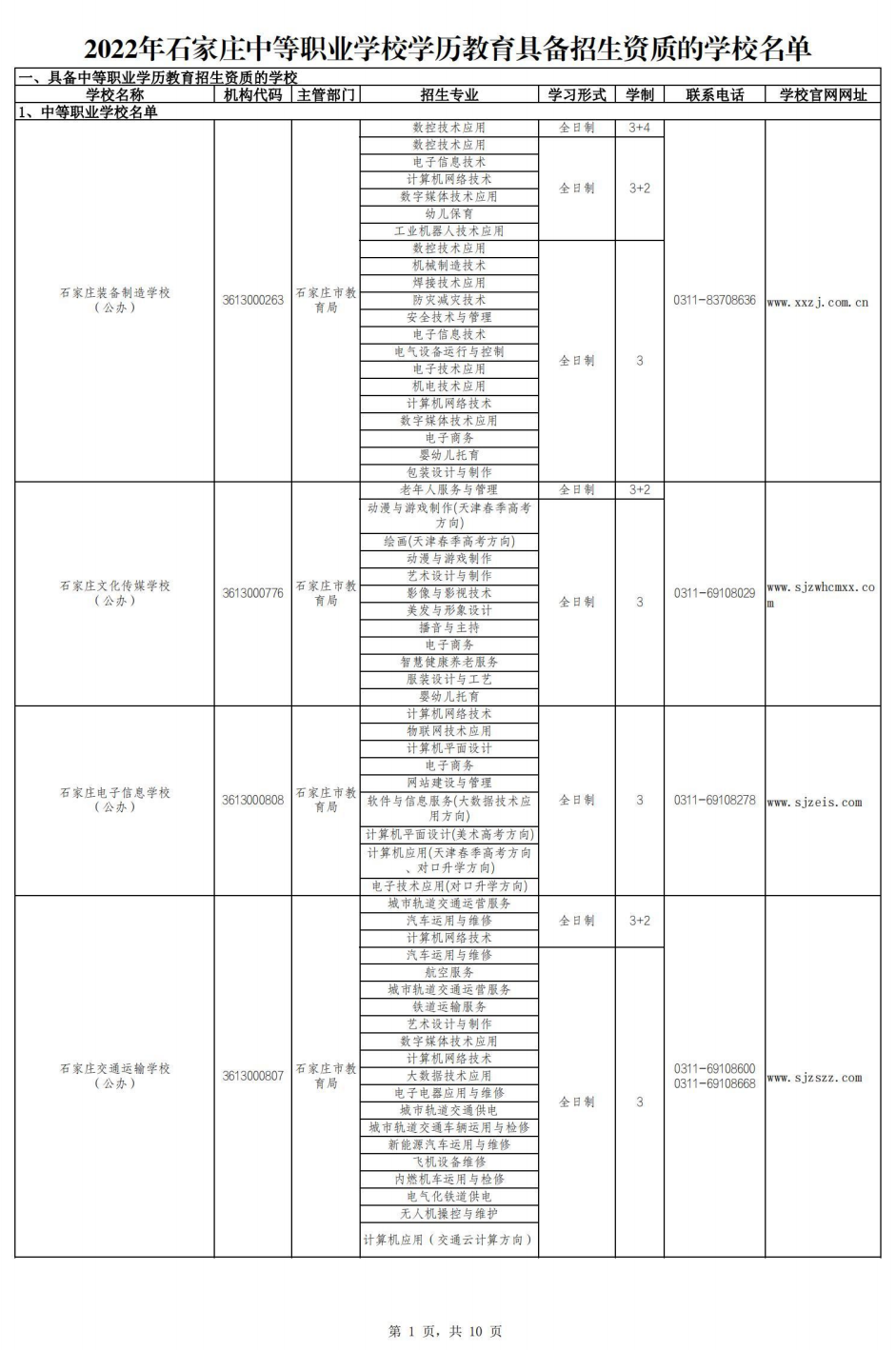2022年石家庄中等职业学校学历教育具备招生资质的学校名单