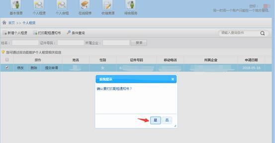 2.是否确认打印配租通知书,点击“是”