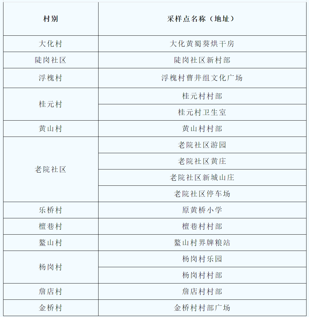 乐桥镇核酸检测采样点信息明细表