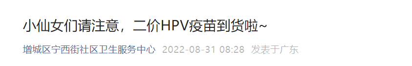 8月31日增城区宁西街二价HPV疫苗预约接种通知