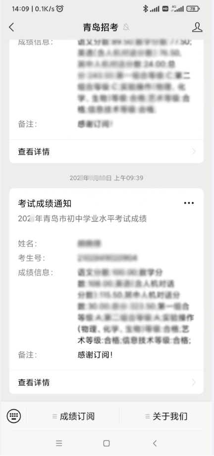 成绩发布时,“青岛招考”微信服务号将第一时间推送,避免考生查询高峰期网络拥堵的不便。