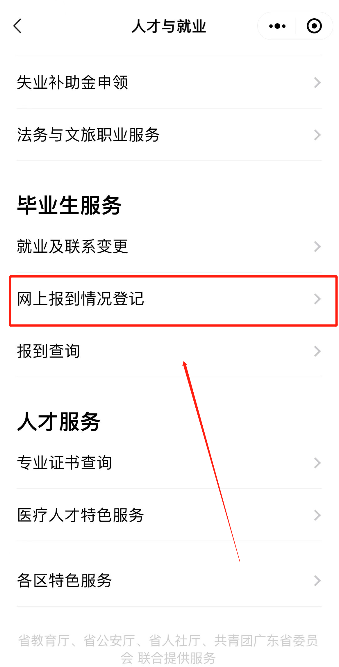 微信粤省事小程序也可报到,打开微信-粤省事小程序-往下拉到“人才与就业”-毕业生服务-网上报道情况登记-填写信息后提交。