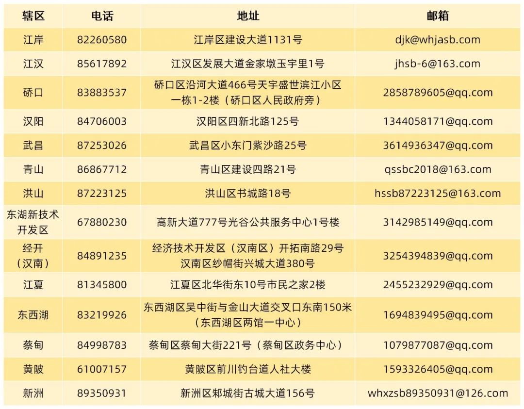 武汉市各社保经办机构对外服务电话、地址及邮箱一览表