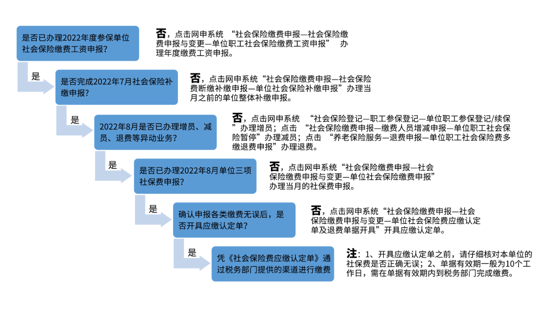 参保单位如果已经登陆网申系统,可结合本单位实际情况,按照以下流程办理相应的社保业务: