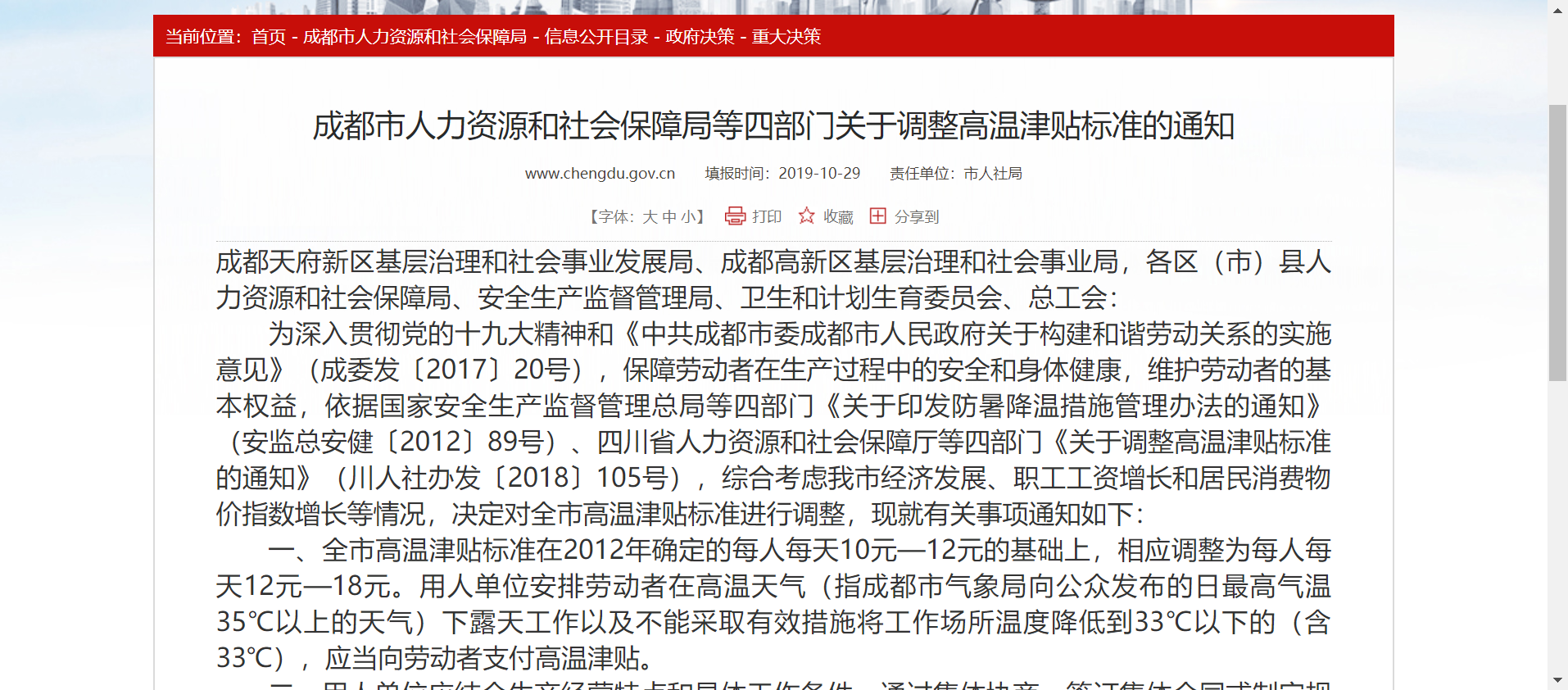 成都高温补贴文件原文 高温补贴 成都