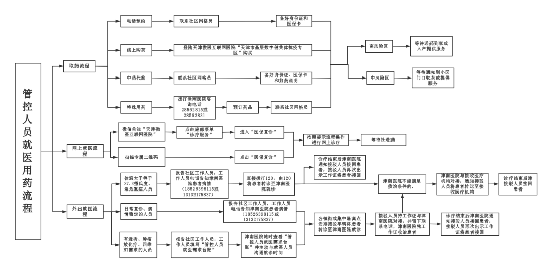 根据疫情防控工作需要,自7月5日起,为切实保障津南区高、中、低风险区居民正常就医需求,实施以下就医用药举措: