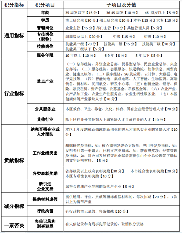 青浦区人才积分指标