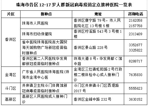 珠海未成年人新冠疫苗接种指南 珠海市未成年新冠疫苗