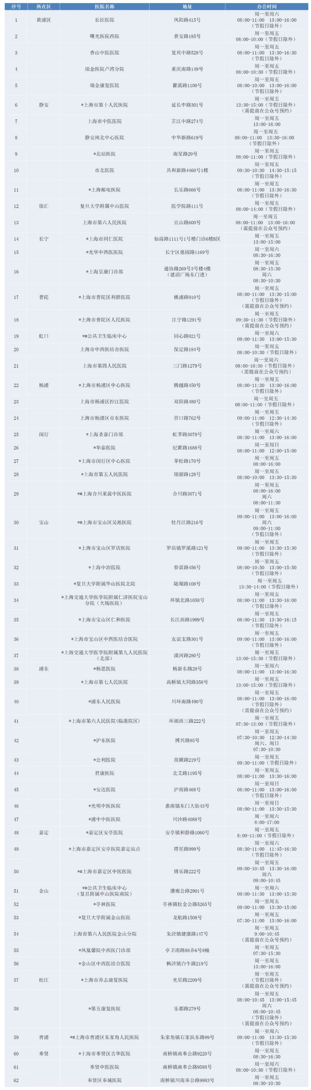 1、带“*”的医院支持驾驶人办理初领和增驾机动车驾驶证的体检;其中,杨浦中心医院支持办理机动车驾驶证体检及增驾驾驶证体检;