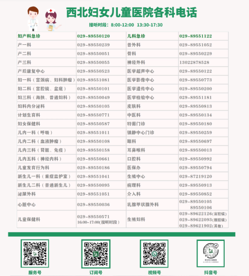 三. 普通门诊正常开放,全面推行非急诊实名制分时段预约挂号就诊模式,预约挂号前请如实填写“西北妇女儿童医院流调表”。就诊当日提前30分钟到院自助机签到取号,全程规范佩戴医用外科口罩,保持1米以上安全距离,一患一陪。