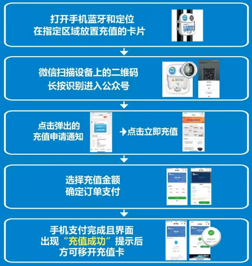 第一步:打开手机蓝牙和定位,在指定区域放置充值的卡片;