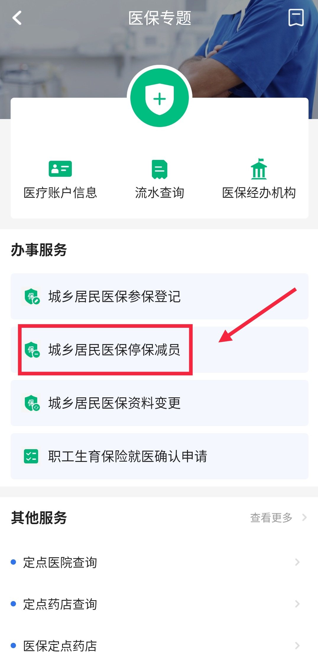 第四步:在【办事服务】页面中找到“城乡居民医保停保减员”,如下图所示;