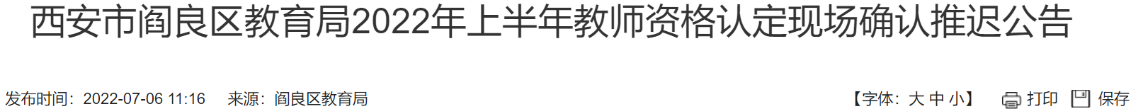 西安阎良区2022上半年教资现场认证推迟公告