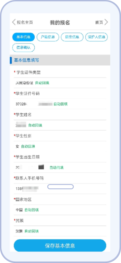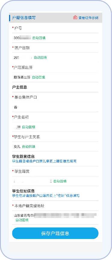 8.按照平台提示填写户籍信息并保存。