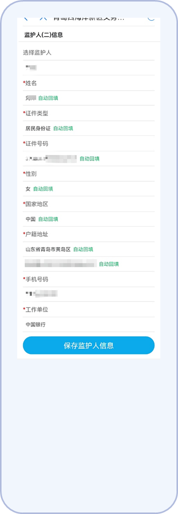 10.按照平台提示填写儿童父母或其他监护人信息并保存