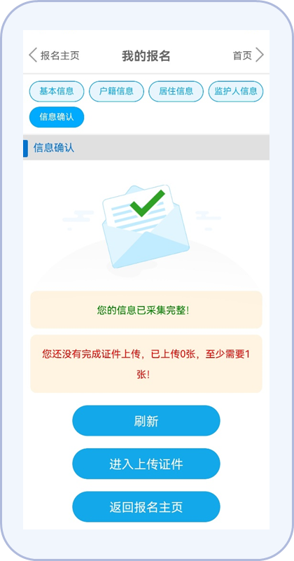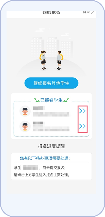 3.进入平台首页,点击“我的报名”(进入完成报名,后续也可随时进入以查看学校反馈的审核通知)。