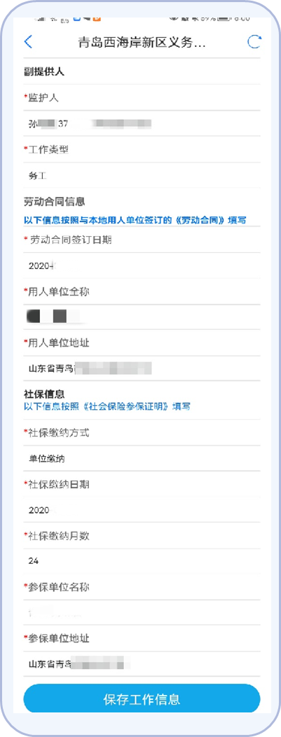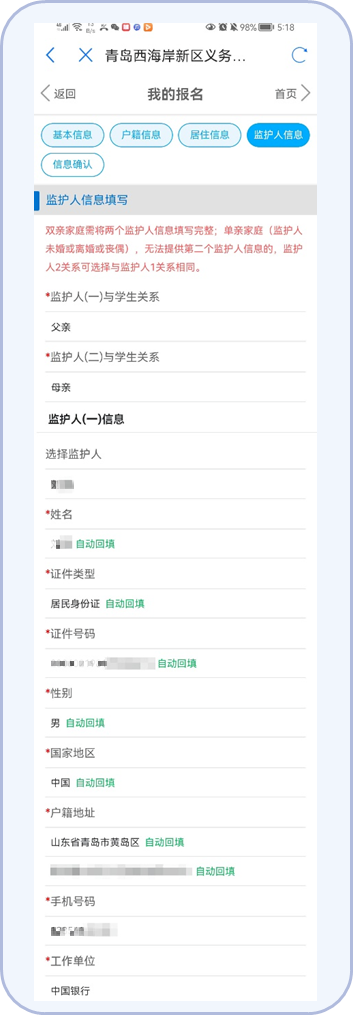 12.按照平台提示填写监护人的经商或务工信息。