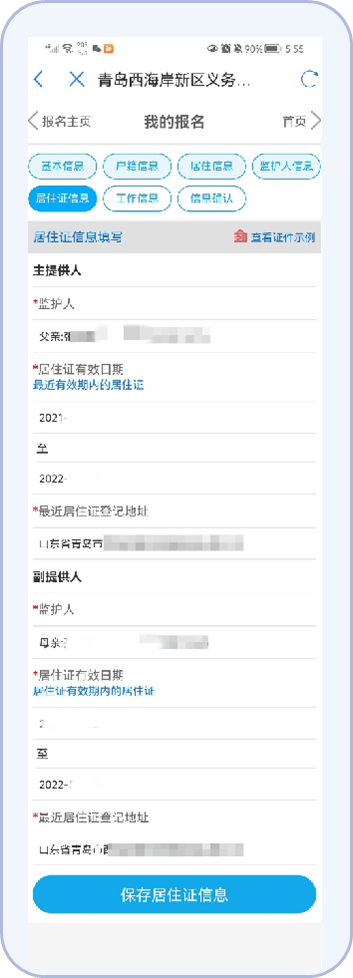 11.按照平台提示填写监护人的居住证信息。