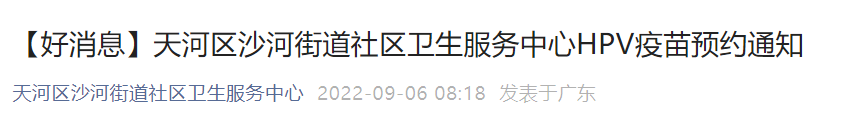 9月7日天河区沙河街hpv疫苗预约接种指南