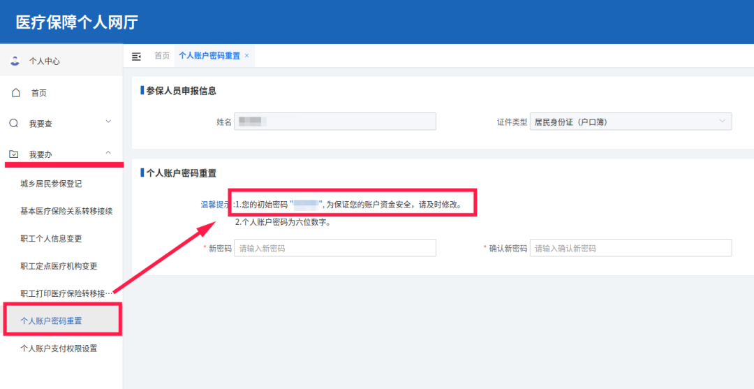3、点击【我要办】,进入【个人账户密码重置】。为保证您的账户资金安全,请及时修改。