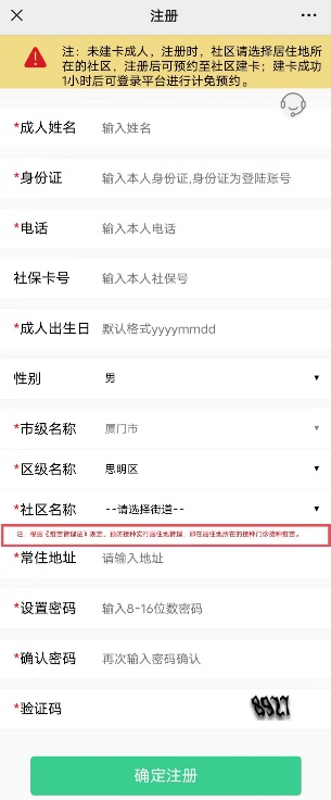 第三步:点击“未建卡儿童/成人注册”,进入界面进行信息填写。