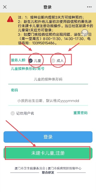第二步:未注册建卡的要先注册建卡,分为儿童和成人两类。
