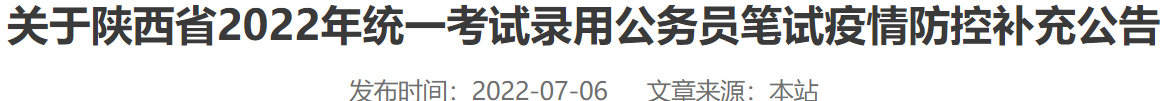 2022陕西省考录用公务员笔试疫情防控补充公告