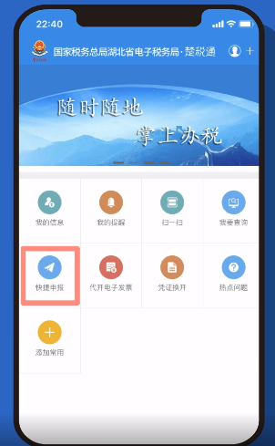 (1)进入首页界面,点击“快捷申报”。