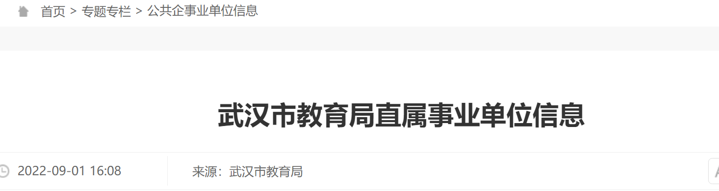武汉市教育局公布了2022年《武汉市教育局直属事业单位信息》,含中专、中学、幼儿园等。