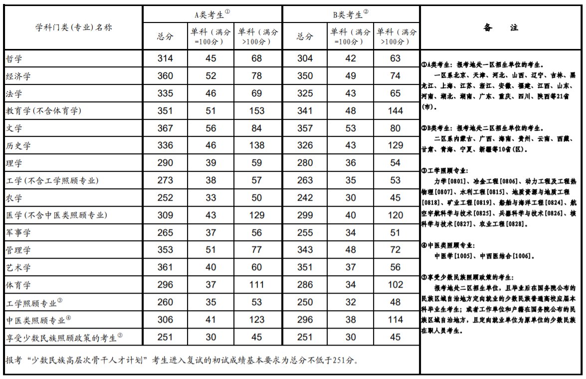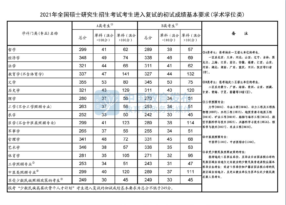 2022年全国硕士研究生招生考试考生进入复试的初试成绩基本要求(学术学位类):