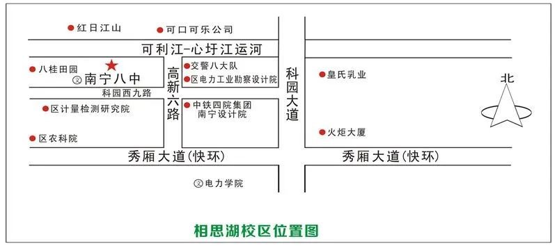 南宁八中创办于1958年,拥有六十多年光荣办学历史,是南宁市享有盛誉的传统名校,是南宁市继南宁二中、南宁三中之后的自治区示范性普通高中。2012年高中部整体搬迁至相思湖新校区。学校占地145亩,现有48个教学班,在校学生2500多人。学校秉承“团结奋斗 不甘人后”的精神,坚持“全面发展 追求卓越”的办学理念,确立“创八桂名校 成中华英才”的办学目标,形成了勤奋而朴实的校风,严格而人文的管理特色,努力为每一位学生提供最优质的学习和成长环境。2016年以来,八中人继承传统,开拓奋进,持续创造教育教学佳绩,实现"教育质量新提升”的跨越式发展,六年三次荣获南宁市高中阶段毕业班工作成绩卓越奖。
