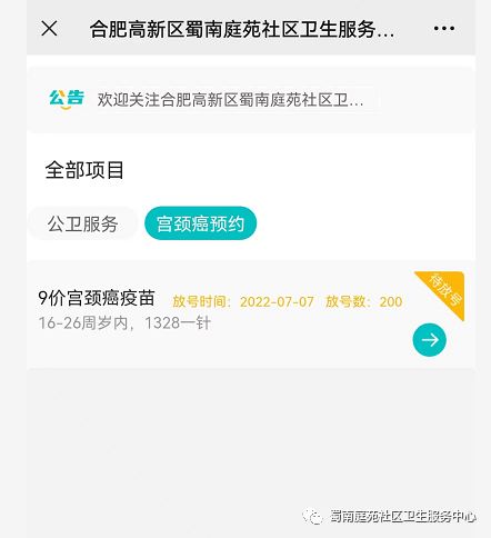 7月7日周四下午2点,蜀南庭苑社区卫生服务中心放号200支9价宫颈癌疫苗,需要的姐妹记得定闹钟哦!本次预约限合肥市户籍及常住居民,14天内无中高风险地区居住史或旅行史请各位居民看清下面预约流程和要求哦!