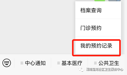 5、如需查询自己的预约记录,返回公众号菜单栏,点击“我的预约记录”即可查看。如因特殊情况无法前往接种,请提前在该页面点击“取消”,否则将影响日后预约。