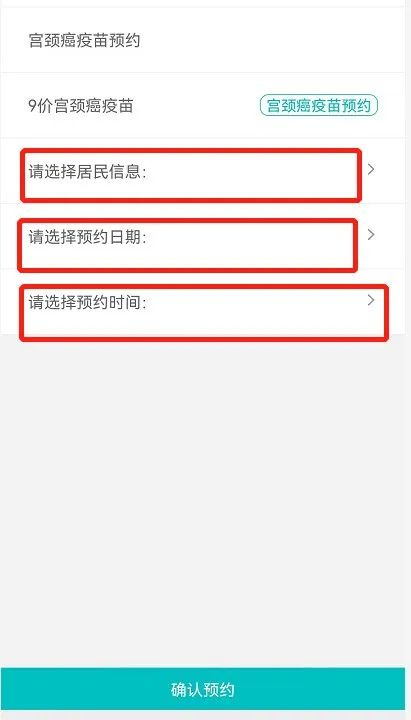 3.放号时间开始后,刷新下界面,即可选择需要预约的宫颈癌疫苗,进入预约信息填写界面。