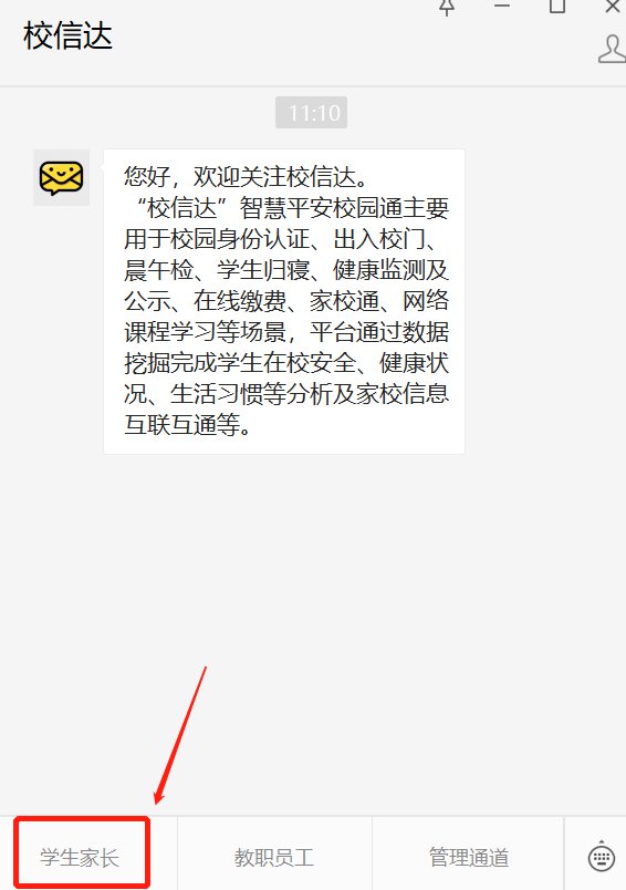 2.网上缴费:审核通过的考生在规定的缴费时间内,通过“校信达”公众号,进入“学生家长”通道,点击“账单缴费”,选择“普通话测试站”,填写本人身份证号,跳转至“缴费”页面,用微信进行网上缴费。