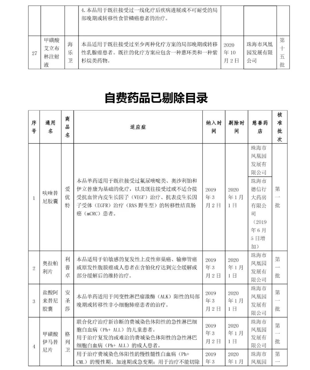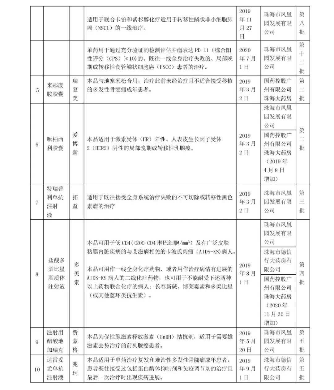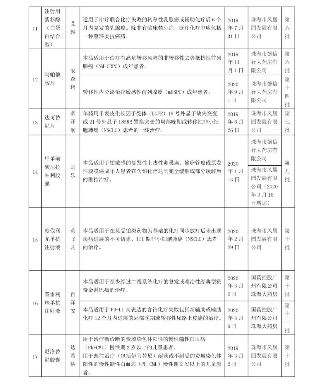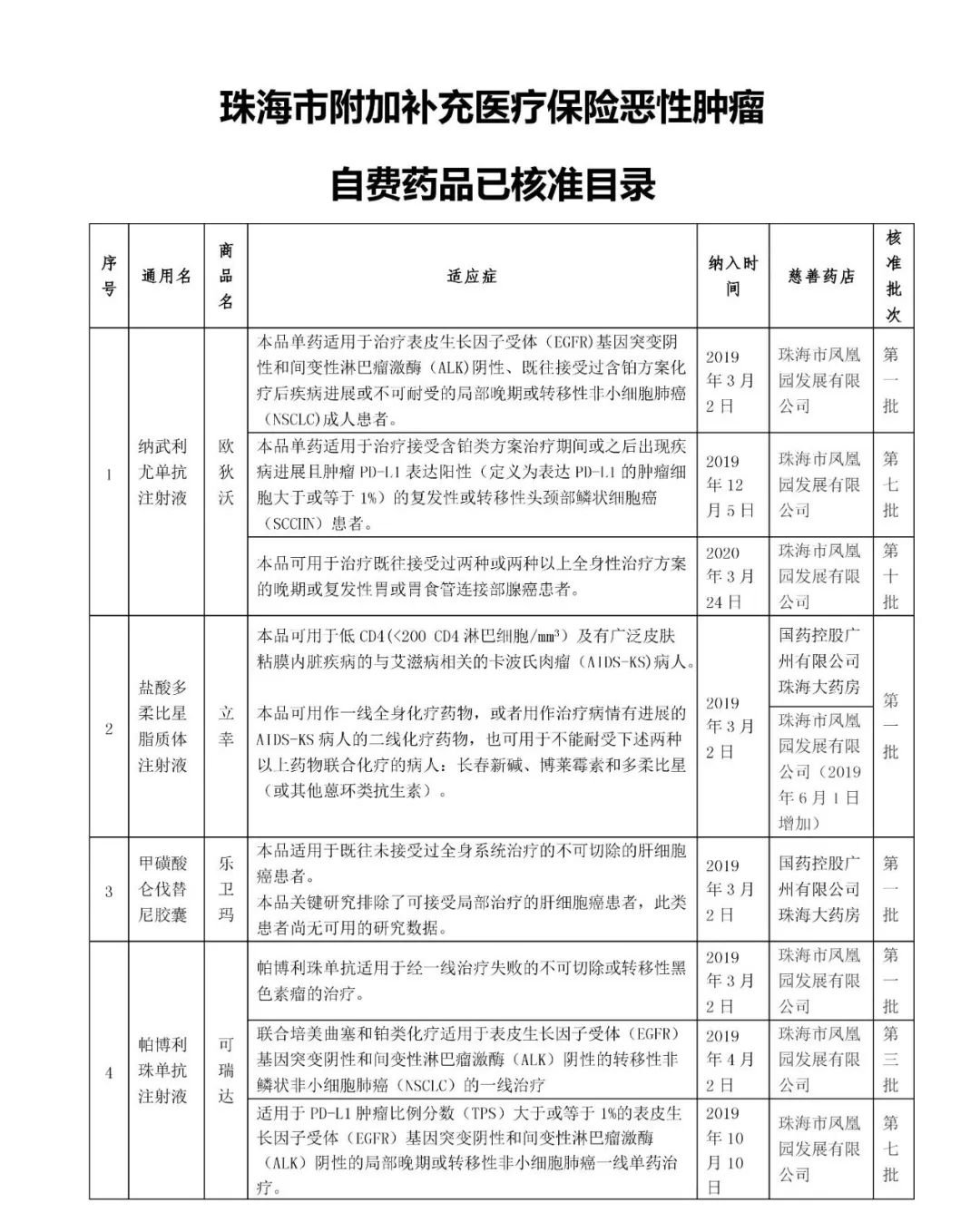 珠海市附加补充医疗保险恶性肿瘤自费药品已核准目录