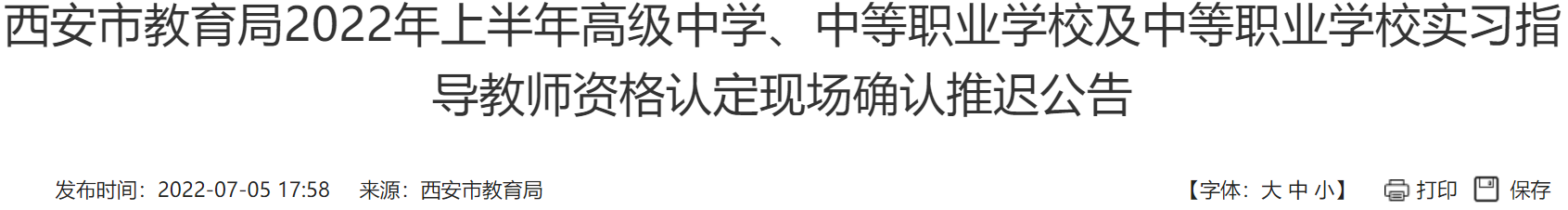 西安2022上半年实习指导教师资格认定现场确认推迟公告