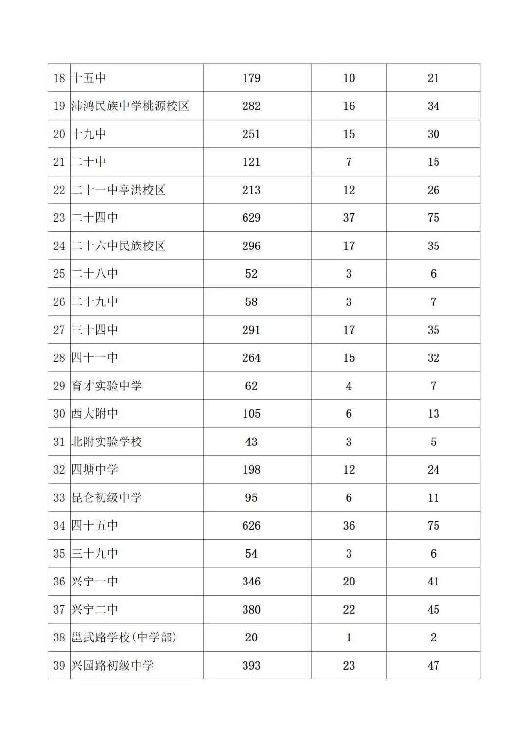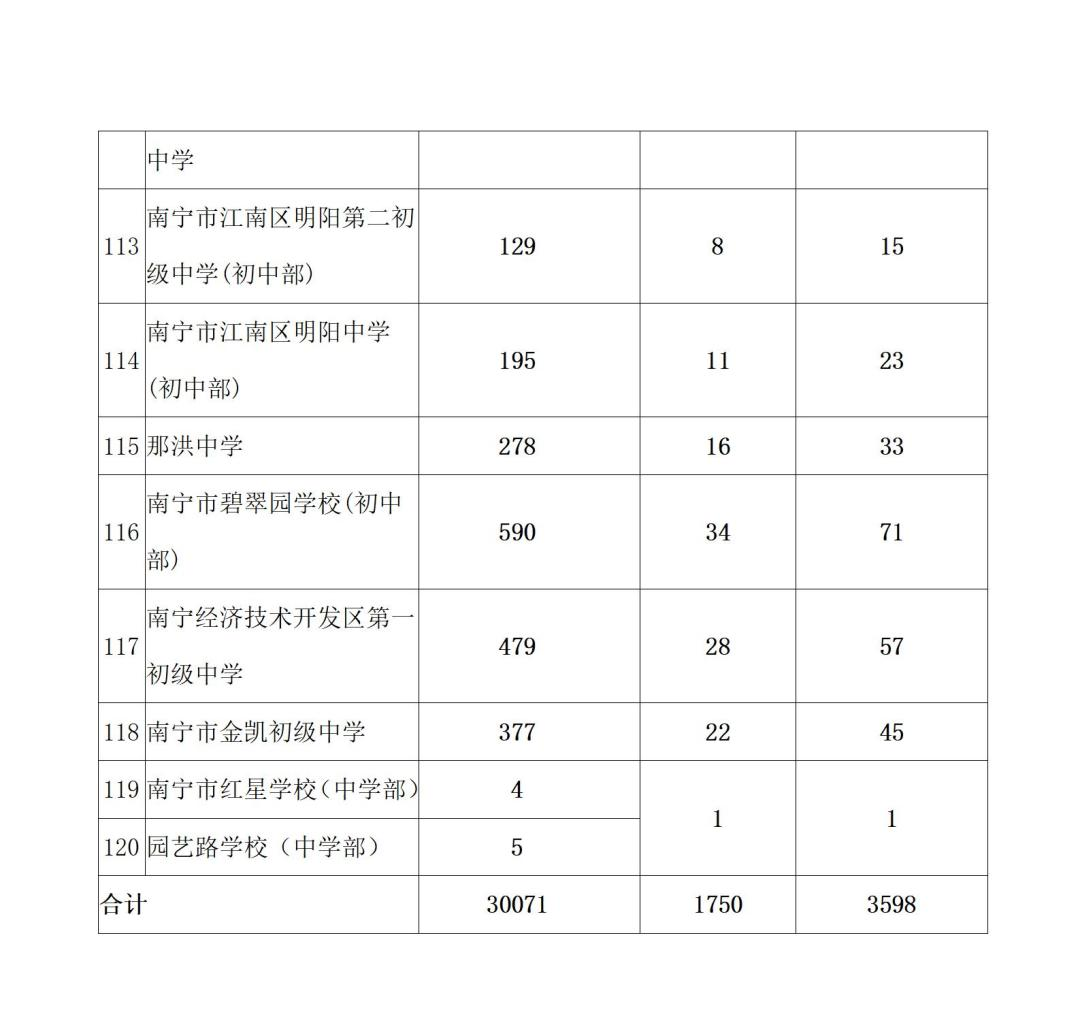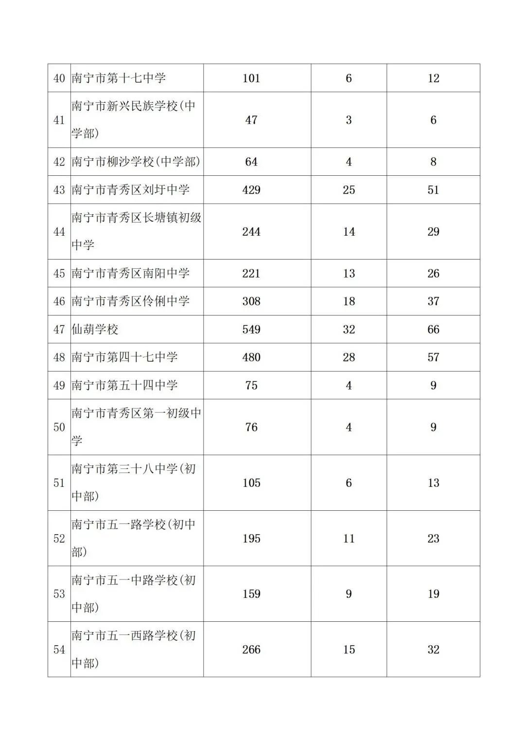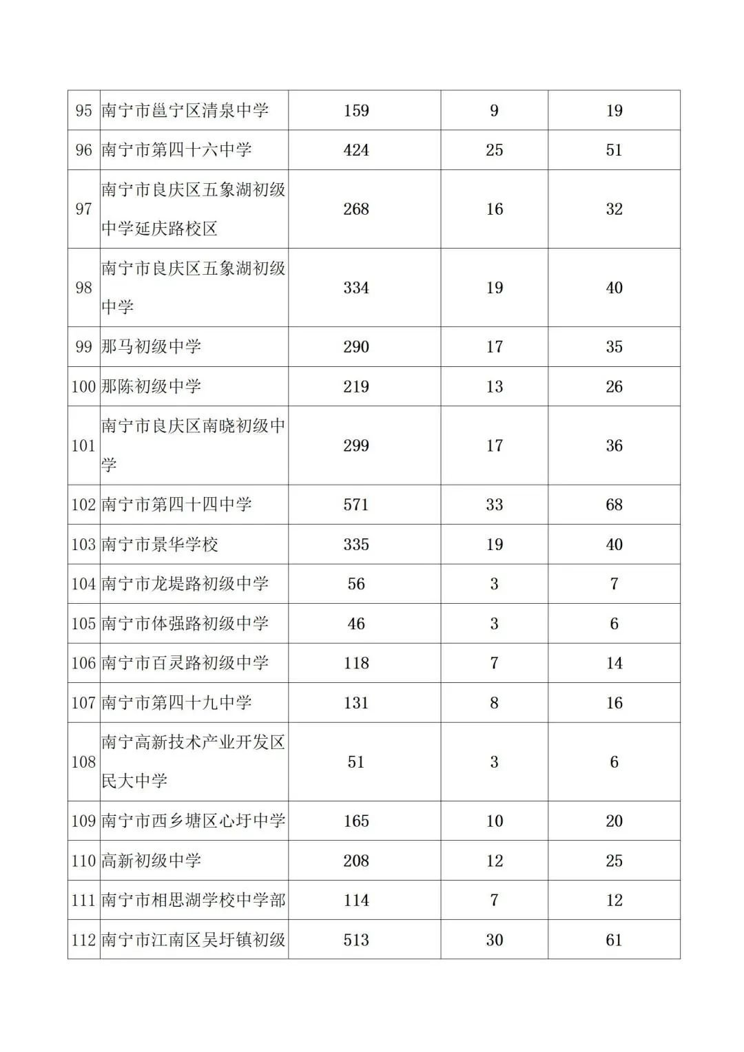 南宁市区2022年公办自治区示范性普通高中定向名额分配表