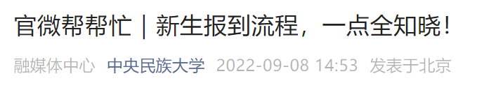 2022中央民族大学秋季新生报到时间及流程(附核酸要求)