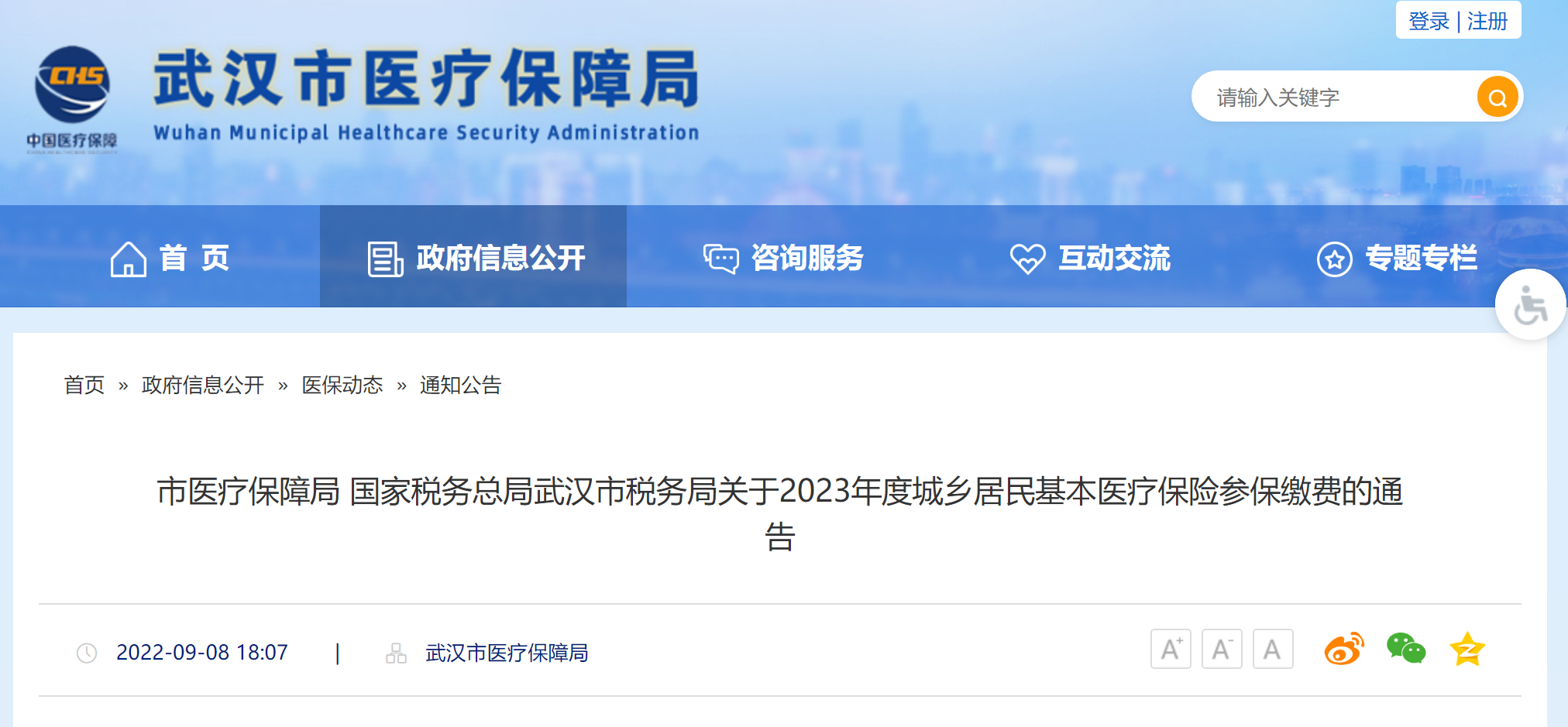 2023武汉城乡居民医保参保缴费通告 2022武汉居民医保网上缴费