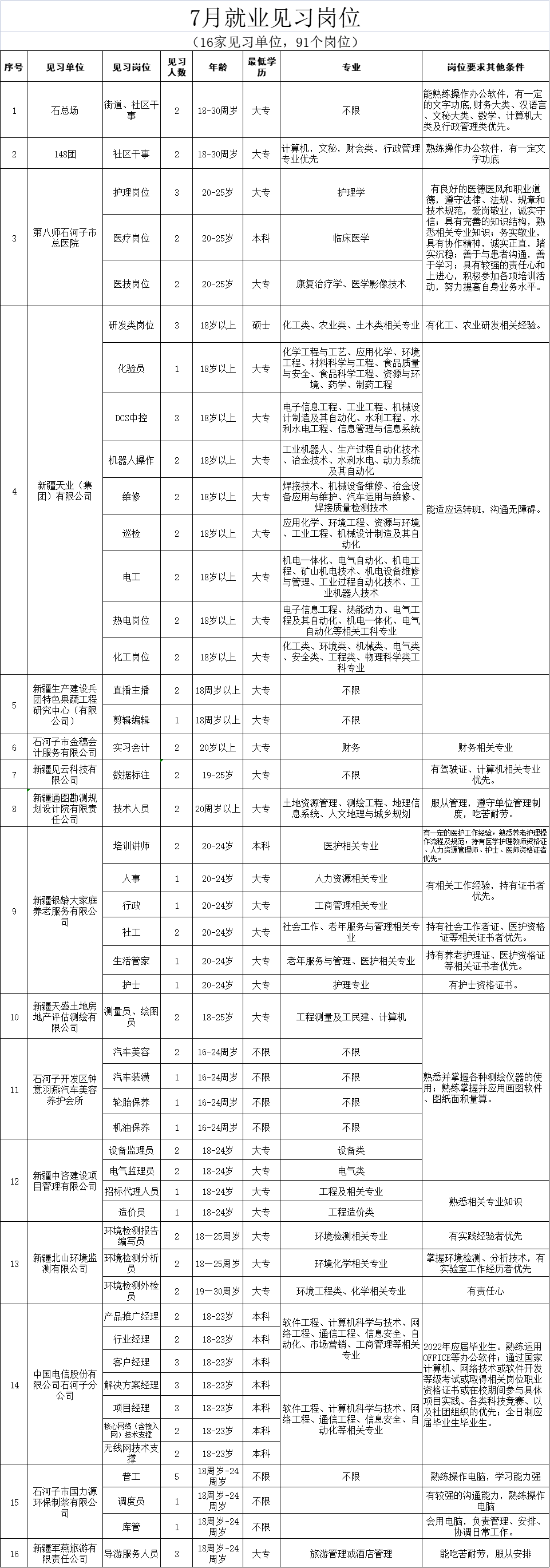 2022年7月八师石河子市就业见习岗位表 2021年下半年第八师石河子市事业单位公开招聘岗位