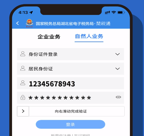 (2)自然人可分别采用银联、支付宝或微信实名认证注册三种方式注册。自然人登录支持“身份证件号码+密码”登录、支付宝授权登录和微信授权登录。
