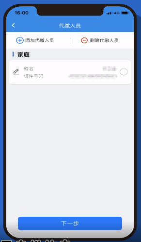 (2)给孩子缴医保可选择“代缴费”,请选择“城乡居民医疗保险代缴”,输入代缴人员身份信息,提取缴费信息,按步骤操作即可。