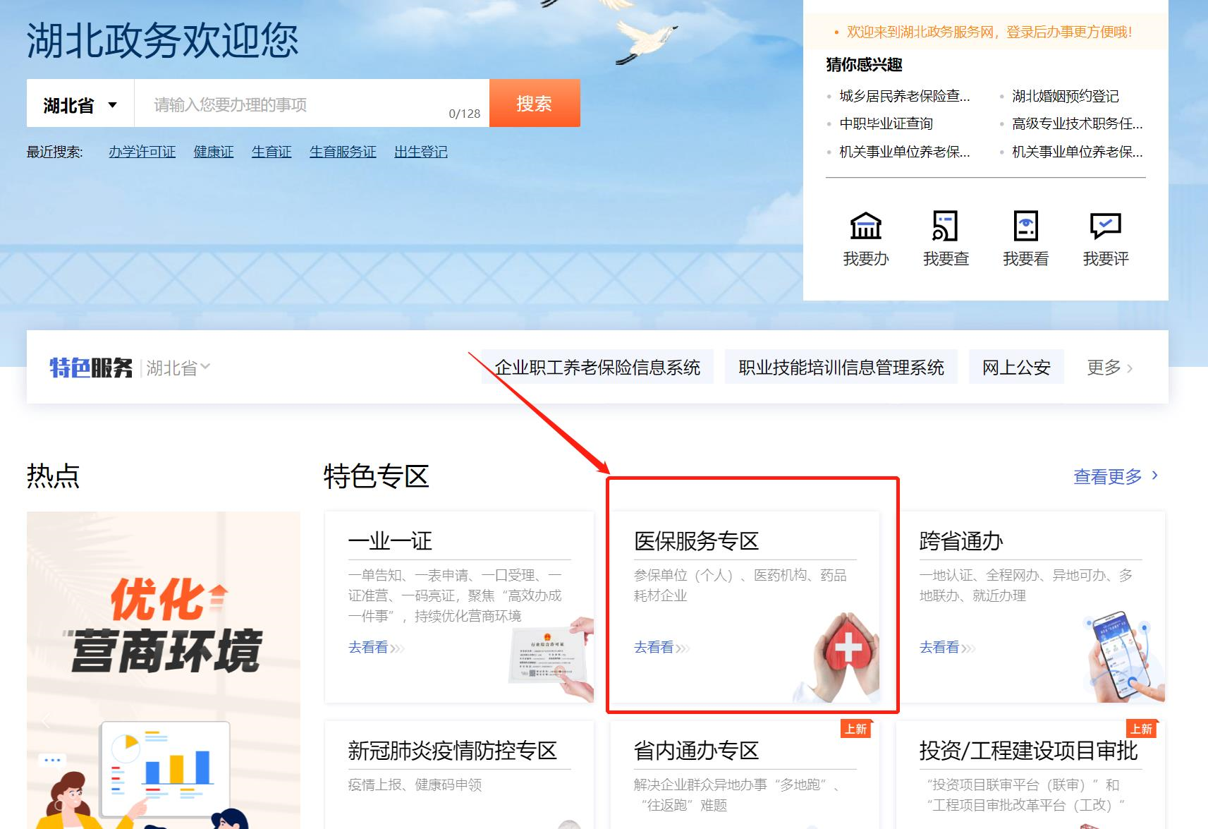 2、首页特色专区栏目,找到“医保服务专区”并点击进入;