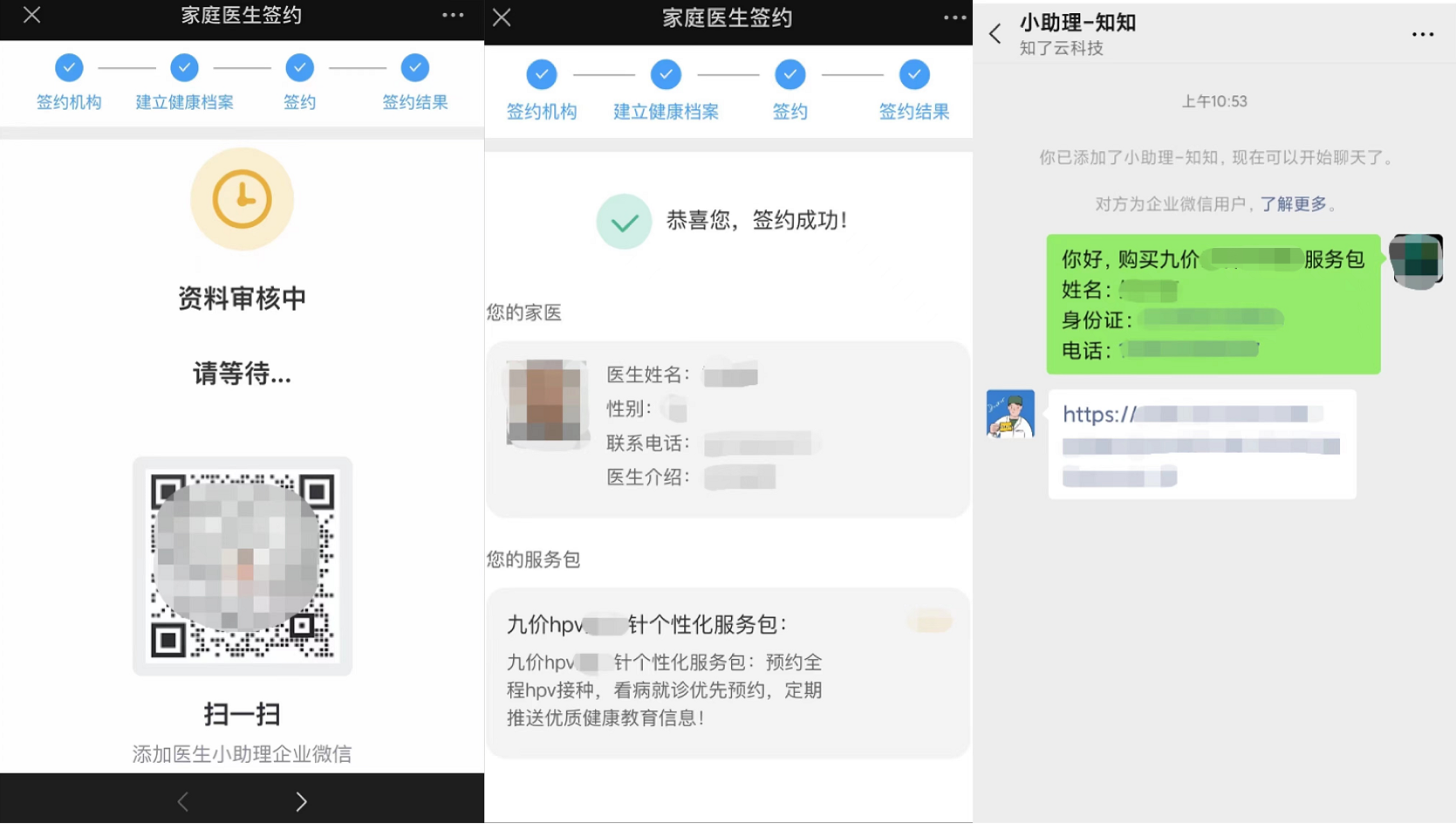 审核通过后,长按底部二维码,添加“小助理企业微信”,回复:“购买九价(包三针)个性化服务包,姓名+身份证号码+电话”。小助理在后台核实信息无误后,会发送购买链接过来。(注意:信息必须是本人实名制认证,审核发现信息与本人不符,不予通过!链接不得转发他人购买!)