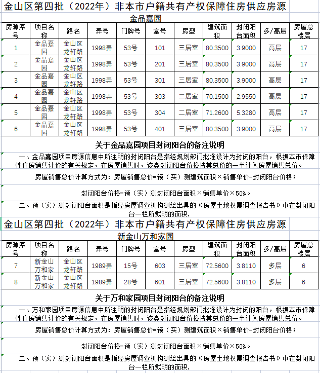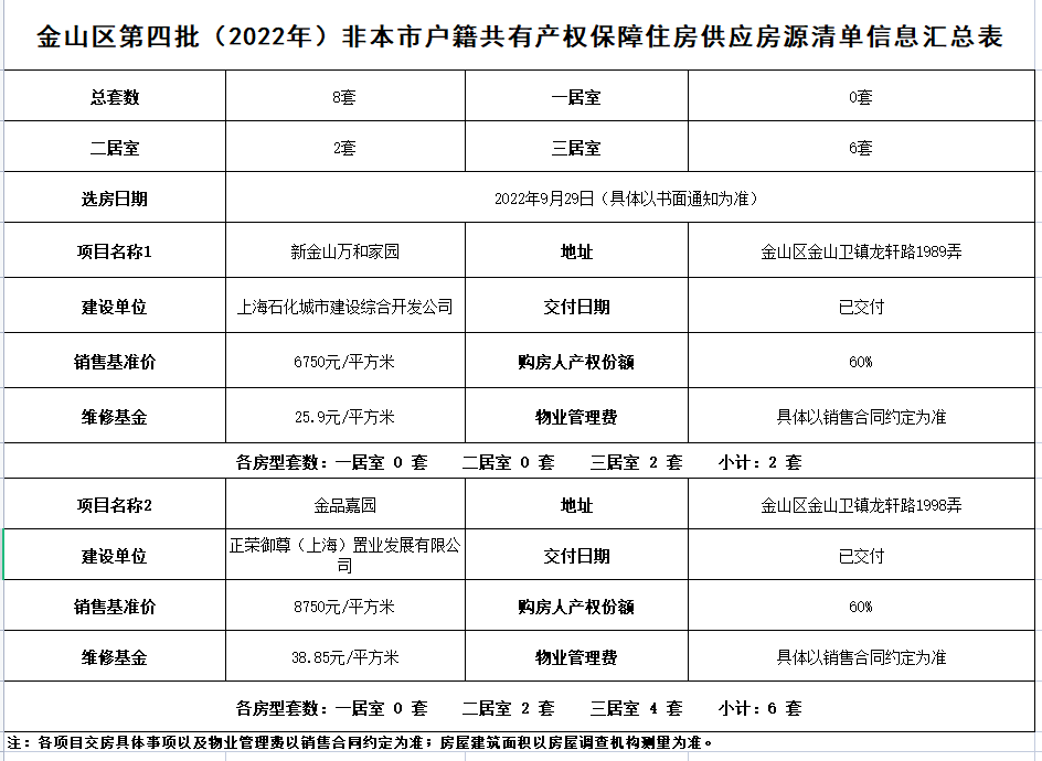 金山区第四批(2022年)非本市户籍共有产权保障住房房源公示