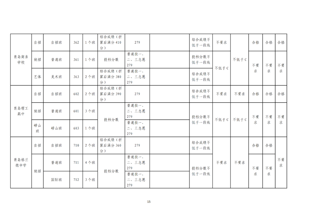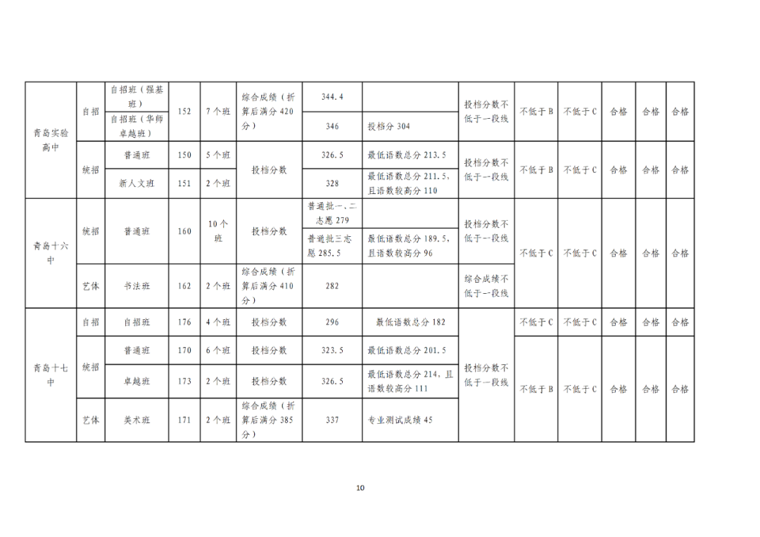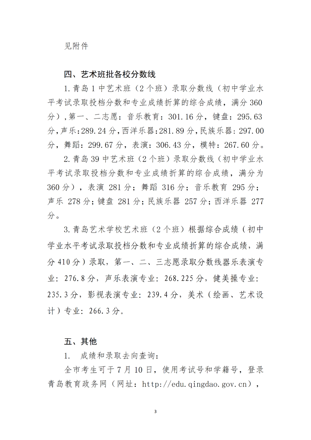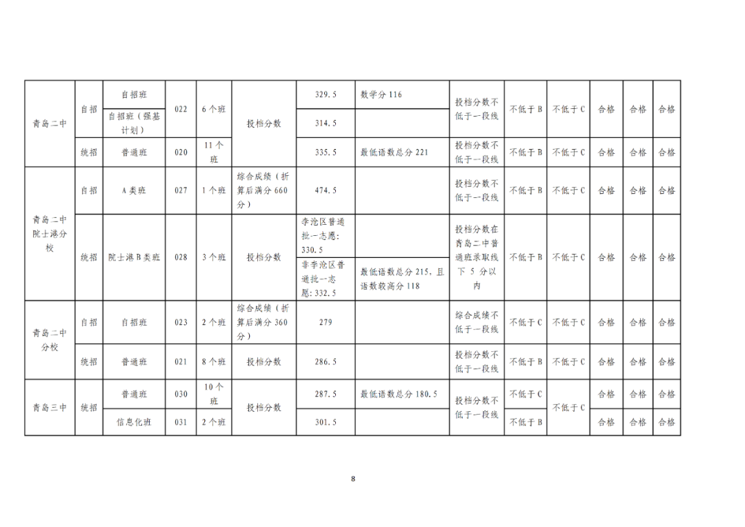 2022年青岛市高中阶段学校第一阶段招生录取分数线公告