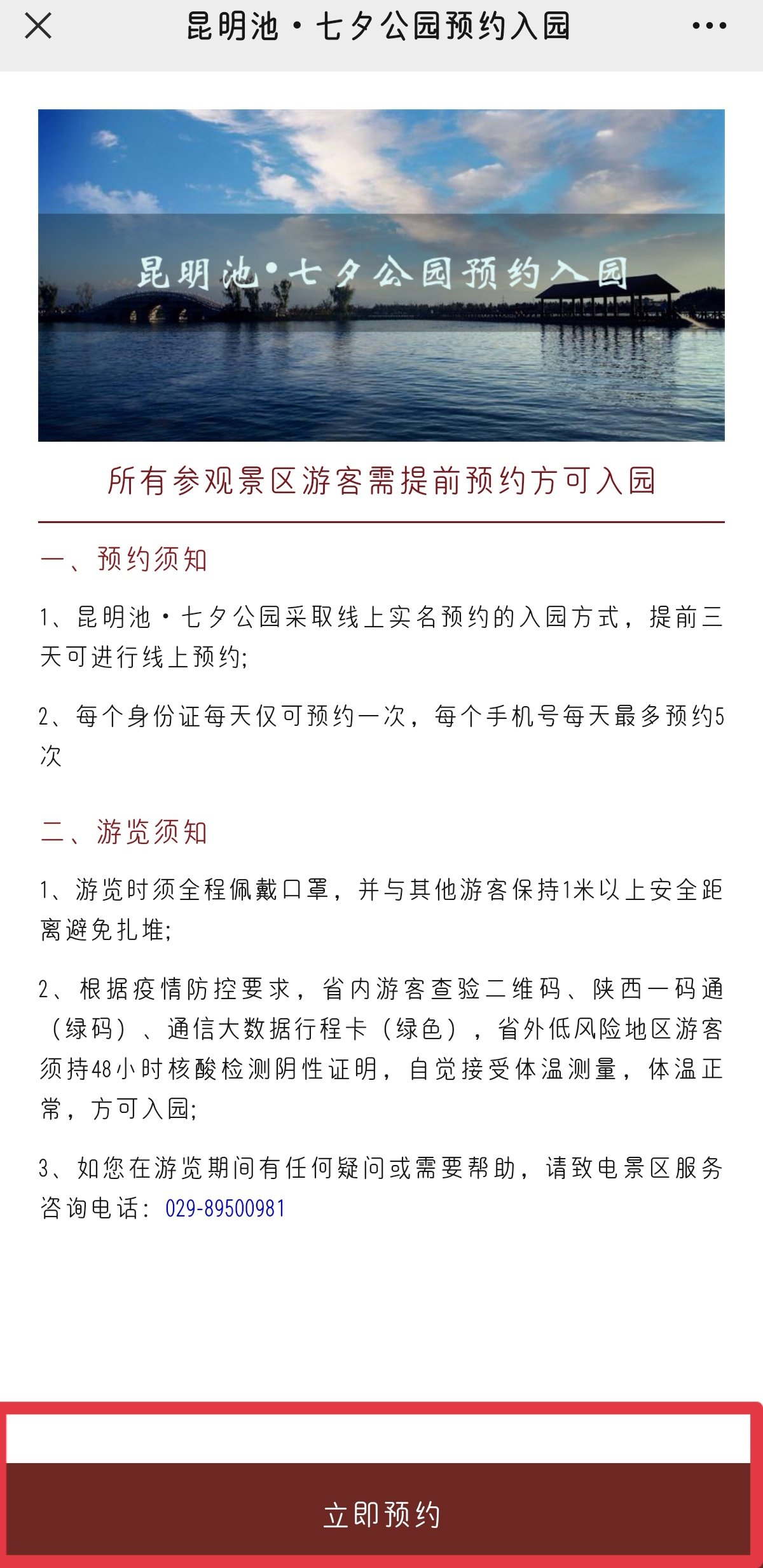 景区采取线上实名制预约入园,最早可提前3天进行预约。